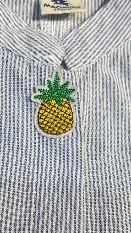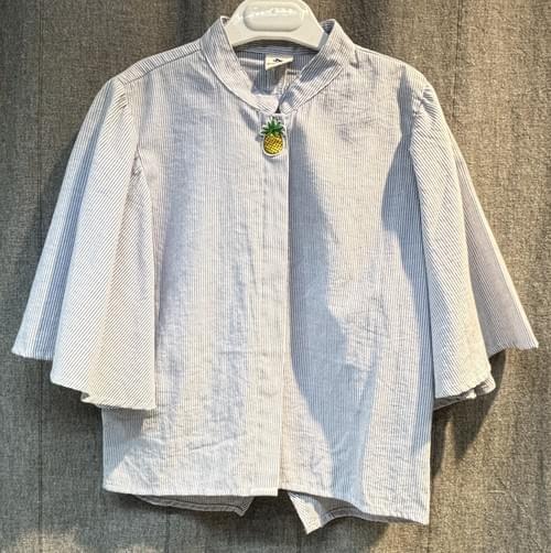 藍白條鳳梨4暗扣飛鼠袖上衣/VIP價310=點數50
