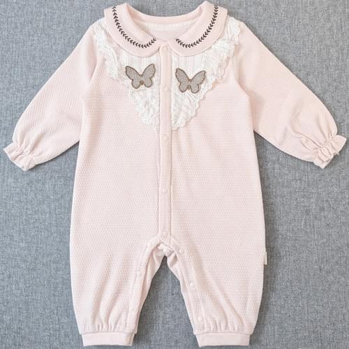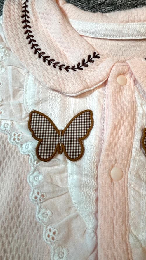 B粉胸二蝴蝶蕾絲圓領連身衣 /VIP價320=點數30