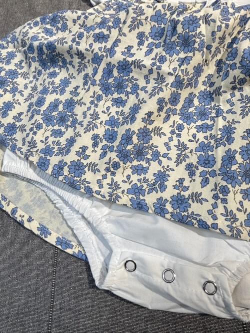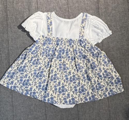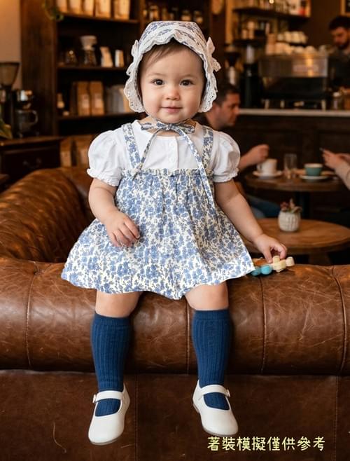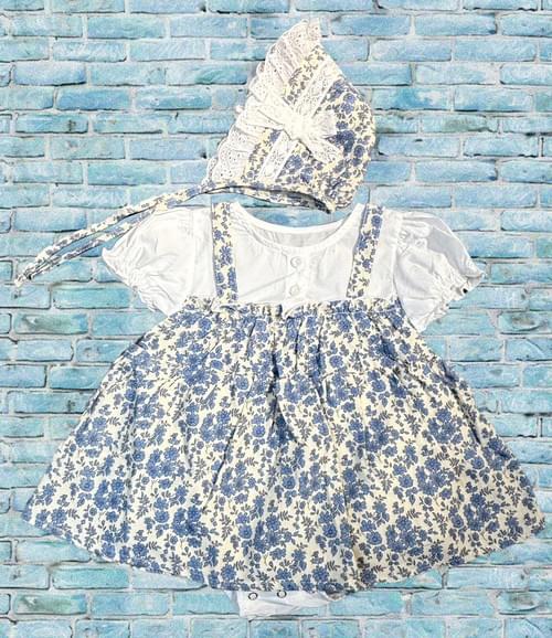 B白底小藍花裙假二件包屁衣附帽 /VIP價320=點數30
