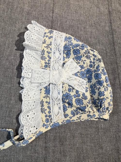 超高CP值的這組, 是假二件式的套組,裡面上衣和包屁褲是白色, 吊帶裙是可愛的米色底印藍色小花的棉布, 還附有法式可折疊的布帽, 真的是可愛無極限啊~😍😍