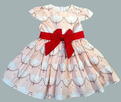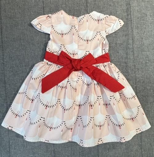 B粉底白鶴紅蝴蝶結洋裝附帽/VIP價320=點數40