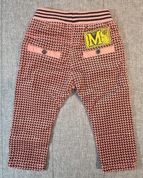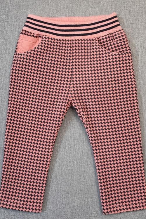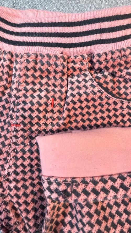 有彈性的粉色黑色的犬齒格布料, 褲頭是羅紋內穿寬版鬆緊帶, 穿著舒適容易