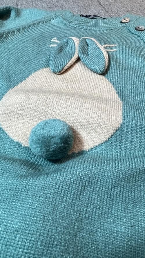 B綠兔子二斜釦毛衣-中性款/VIP價410=點數40