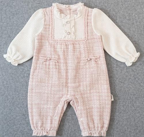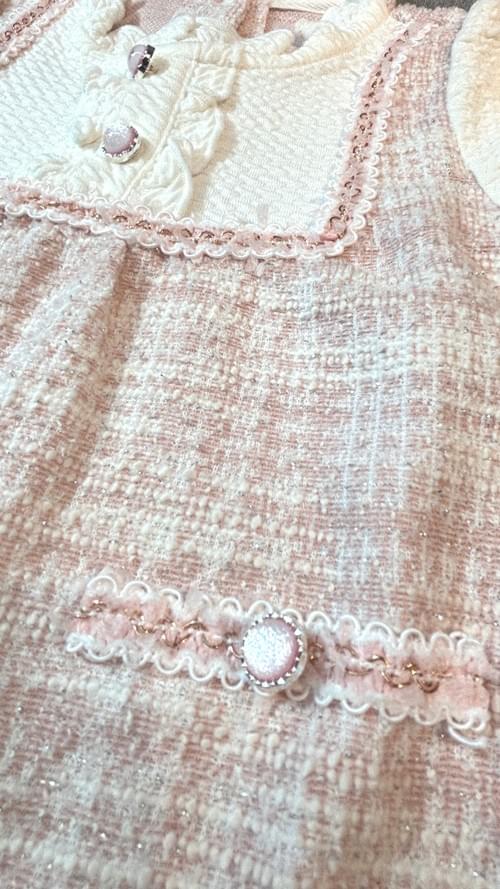 B粉小香假吊帶二白釦連身衣 /VIP價410=點數40