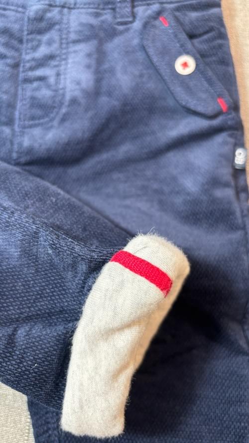 B藍色絨布白釦紅飾線褲/VIP價420=點數30