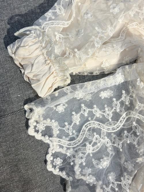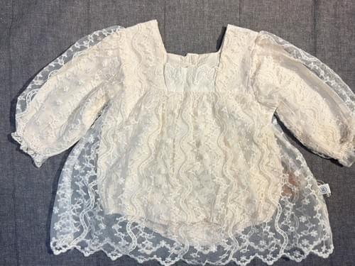米白色的透氣棉布, 外罩整件的法式蕾絲, 寶寶一穿, 就是小天使啊~