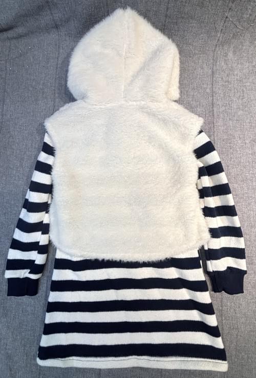 藍米色條紋長T+毛毛兔子背心/VIP價1390=點數100
