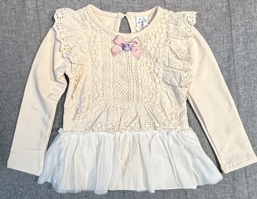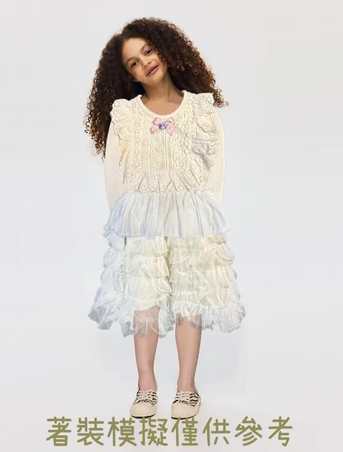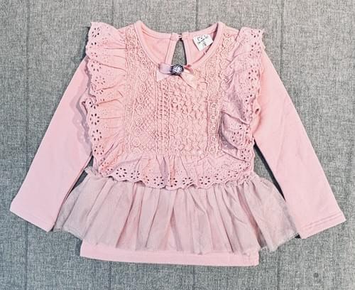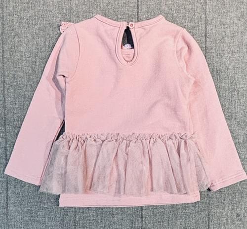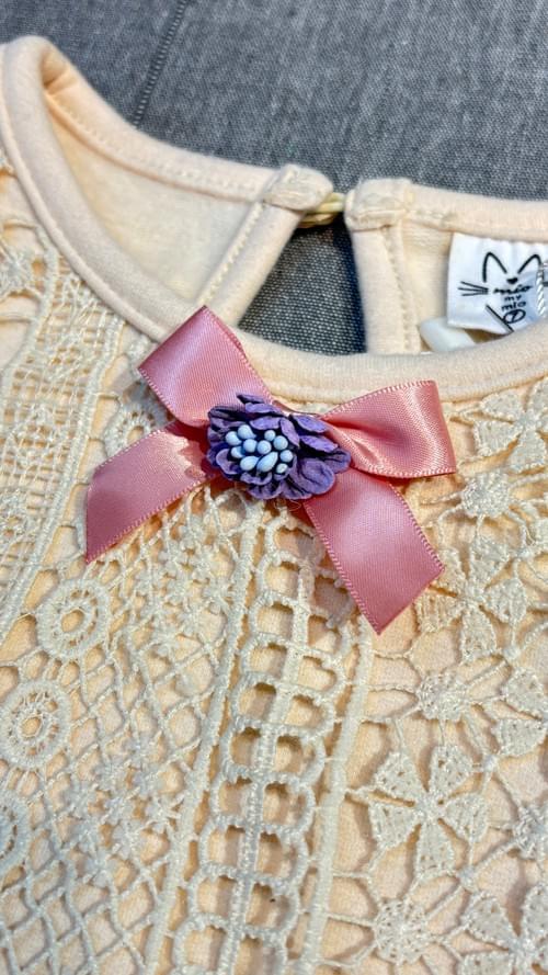 胸U型荷葉腰網布粉花結T-杏/粉二色/VIP價330=點數20