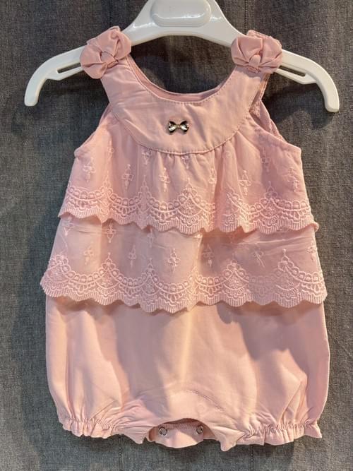 粉U型肩帶三道蕾絲包屁衣 /VIP價410=點數30