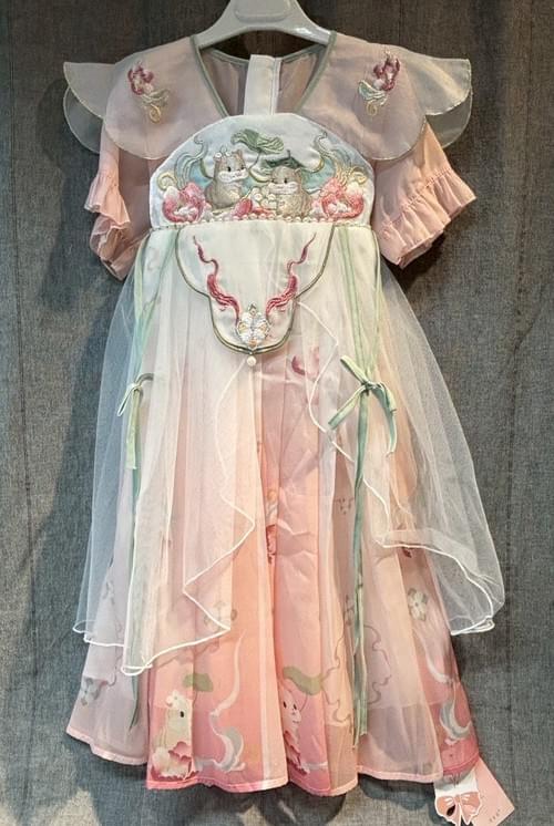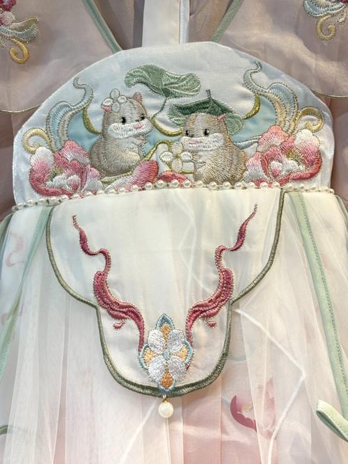 唐風粉漸層胸繡鼠飛肩禮服/VIP價1190=點數90