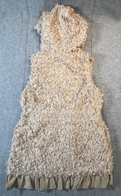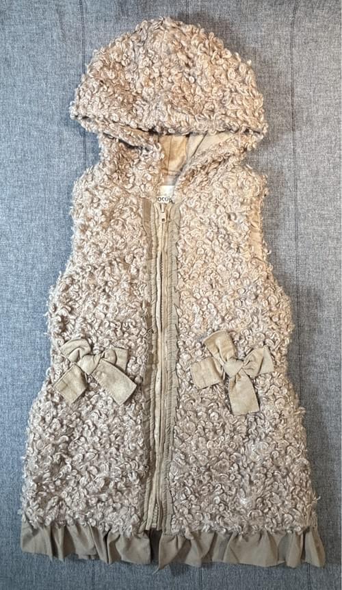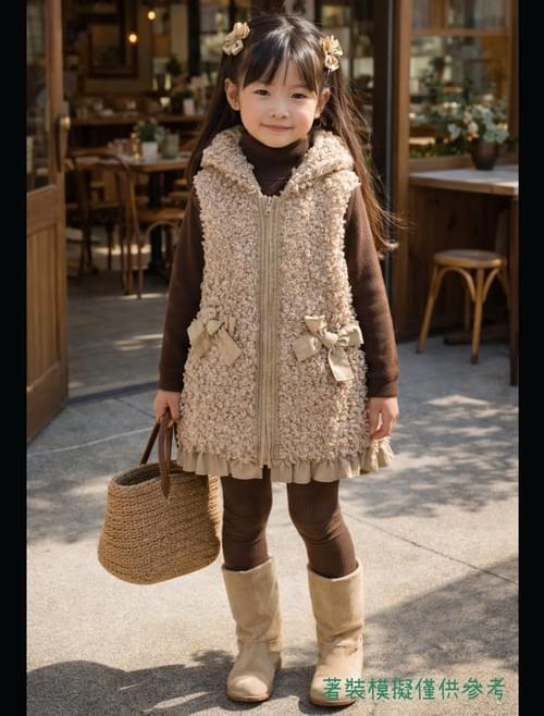 奶茶色長毛麂皮蝴蝶結連帽馬甲/VIP價1290=點數100