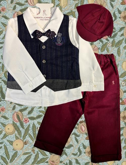 禮盒-男-藍條背心棗紅帽褲/VIP價1490