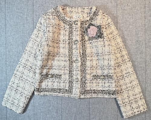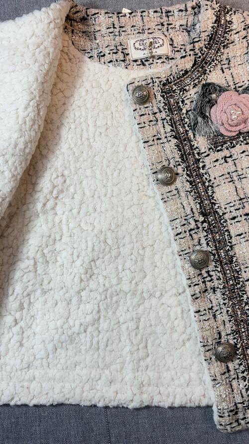 小香杏黑粗毛呢蝴蝶結花四釦外套*大女孩款* /VIP價1590=點數170