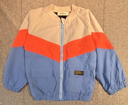 拚色卡其水藍橘拉鍊防風外套/ VIP價220=點數30