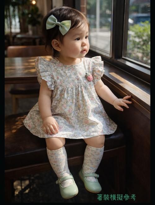 卡其色底小梨花布包屁洋裝(飾草莓) /VIP價290=點數30