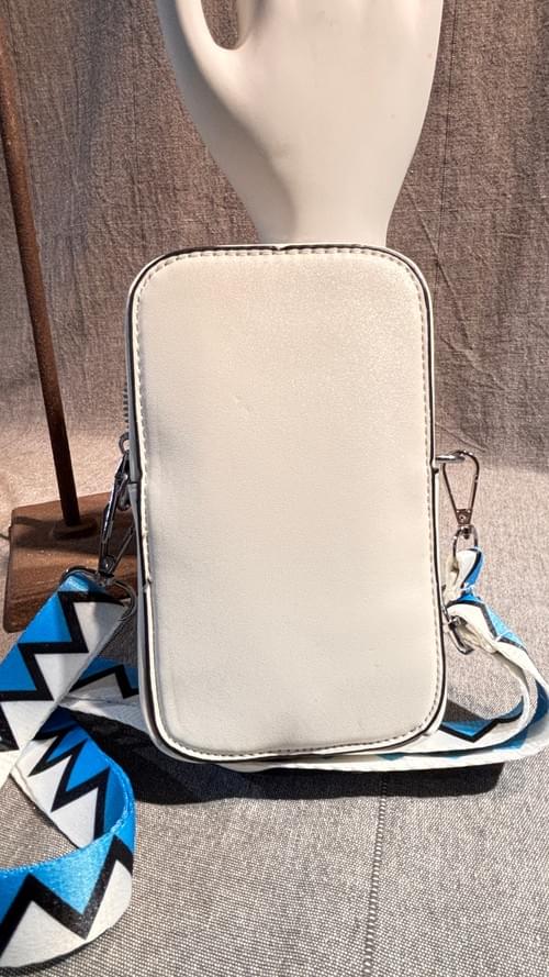 白色搭配藍白相間的揹帶(可取下)