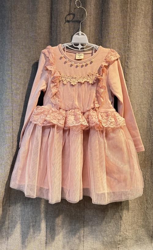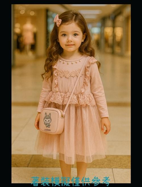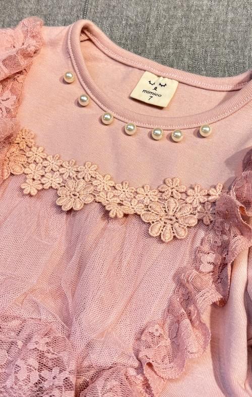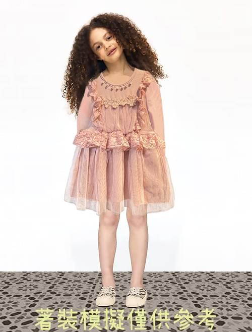 粉色領口飾珍珠蕾絲紗網洋裝/VIP價330=點數30
