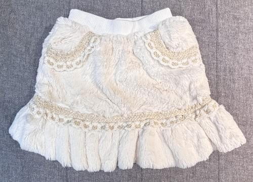 杏色毛絨金織帶荷葉短裙/VIP價330=點數60