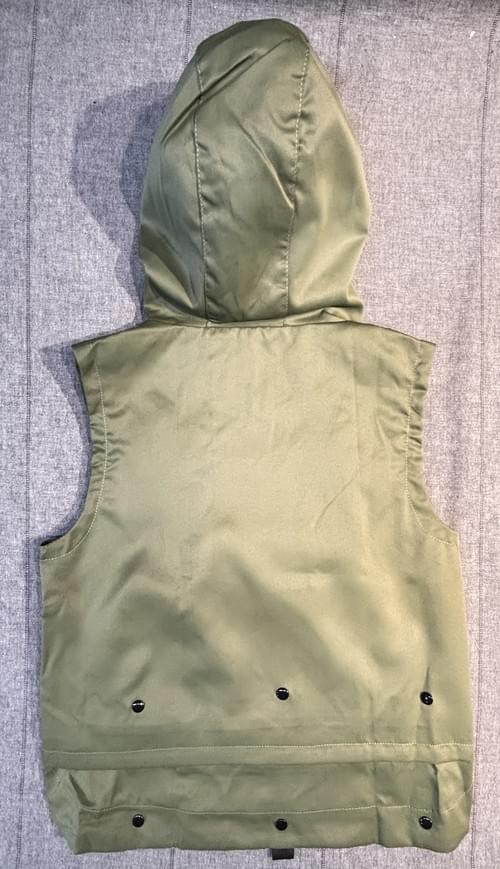 軍綠防風長短拉鍊工裝連帽背心/VIP價370=點數40