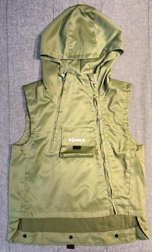 工裝風是這二年最火的設計, 這件連帽背心, 布料是防風的輕薄材質, 有處理得很漂亮的內裡,長短二道拉鍊的設計很特別很帥~