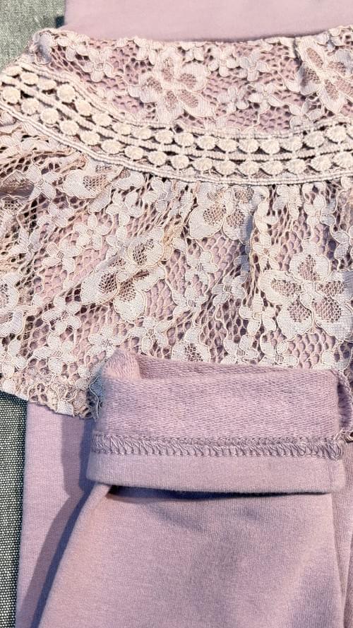 法式的立體線繡蕾絲裙, 內搭褲是很厚實的彈性面料, 不僅氣質柔美又保暖好活動, 很實穿又適合各種場合的高CP值單品!