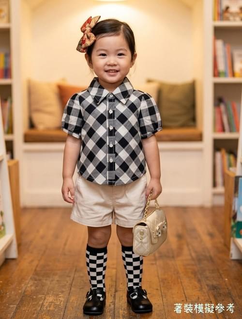 黑白格紋公主袖襯衫/VIP價380=點數40