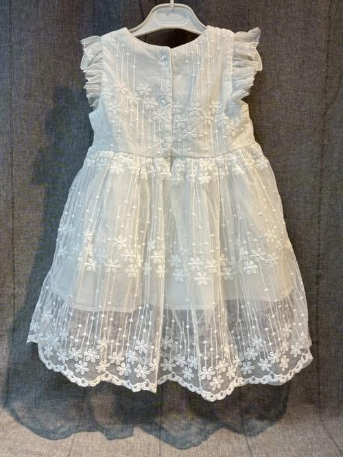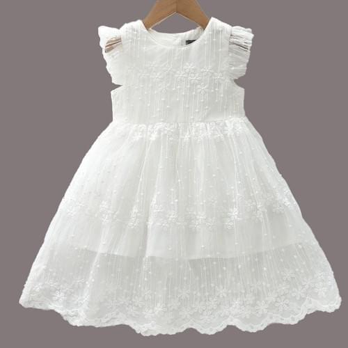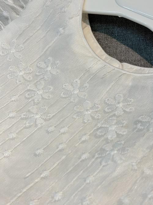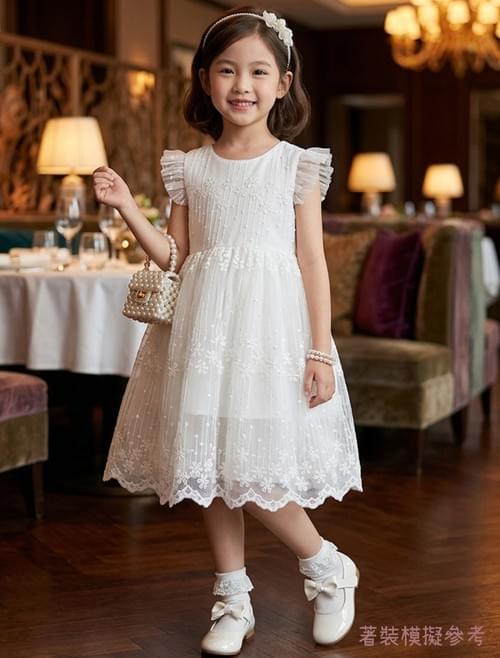 白飛袖三段繡小花蕾絲布洋裝 /VIP價390=積點40