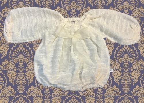 手感柔軟的蕾絲布, 前有輕飄飄的大蝴蝶結, 帶有戲劇性的大蓬袖, 滿滿的時尚感~