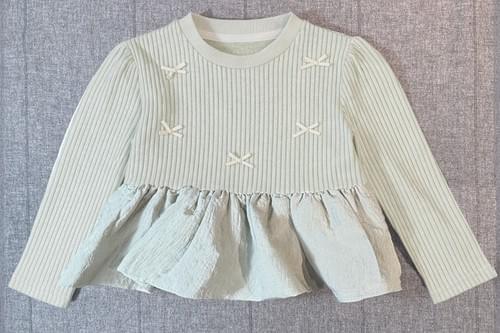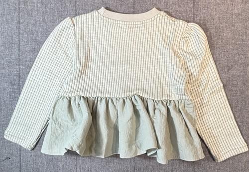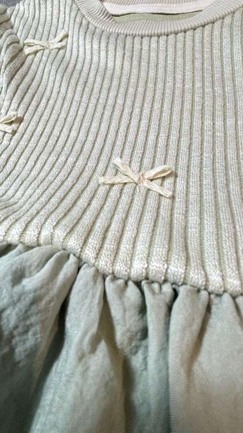 柔柔的秋香綠針織上衣, 剪接紗的荷葉裙, 是小女孩兒天真美好的樣子~🤩