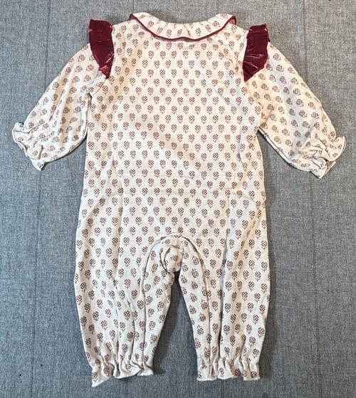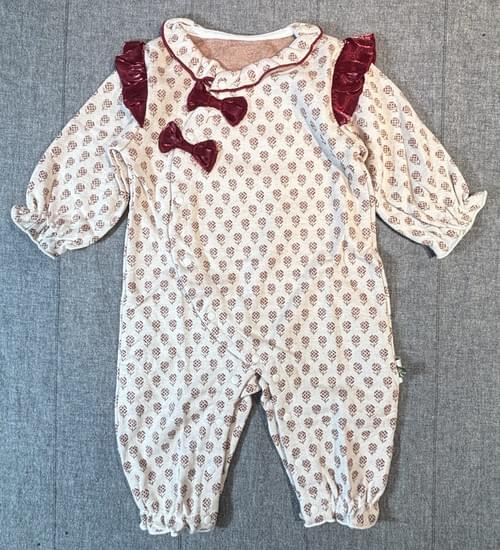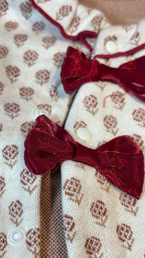針織布織的小花布料,有厚實感,紅色的荷葉邊蝴蝶結,充滿喜氣~😘🎉