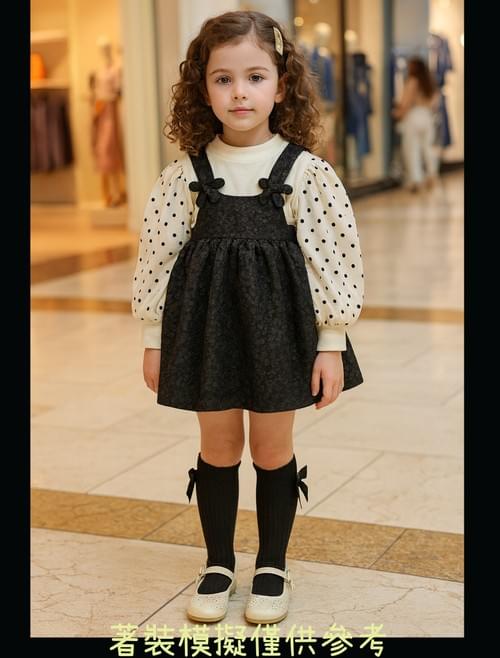 米色黑點紗袖上衣+黑色吊帶裙套裝/VIP價480=點數50