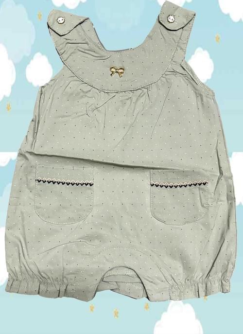 這款棉布裁製的包屁衣, 有二個不同風格的設計,此款是莫蘭迪綠,