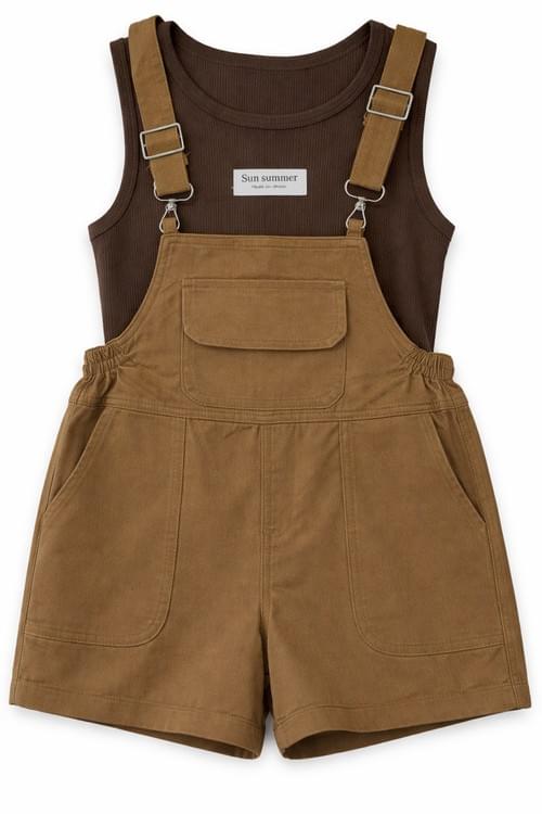 咖色羅紋背心土黃色吊帶褲組/ VIP價/490=點數40