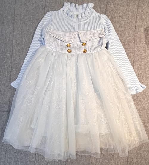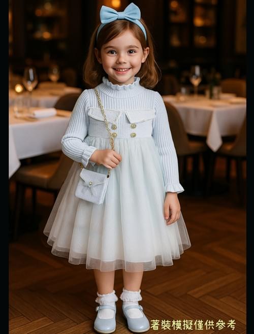 小香風水色假二件高領針織衫四釦毛料網紗洋/VIP價550=點數70