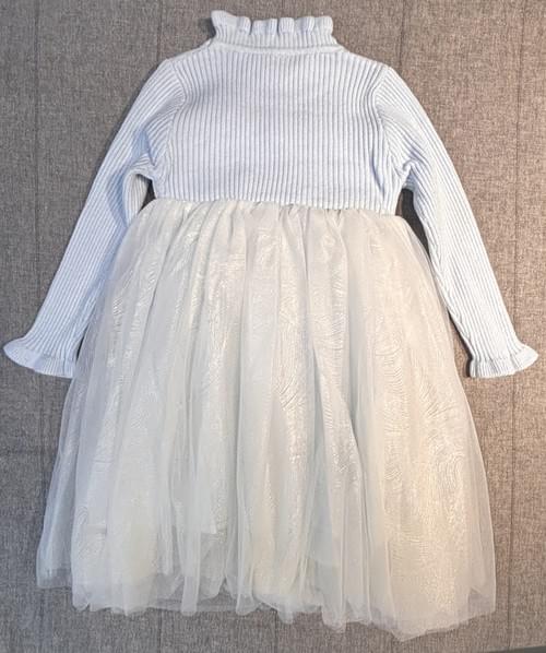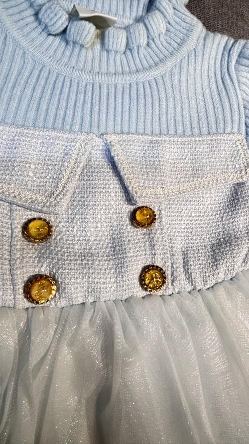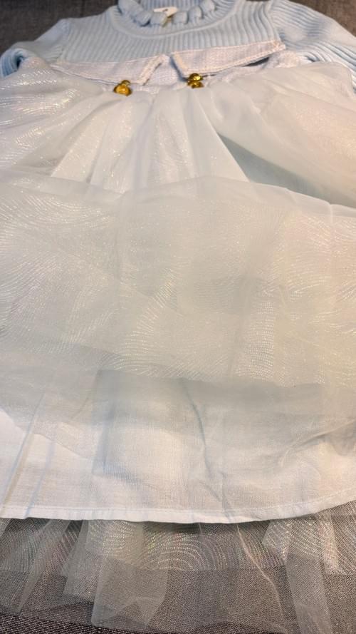 很美的BABY粉藍, 穿上身很顯白, 高領有一體成型荷葉邊的針織衫, 很好穿脫