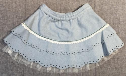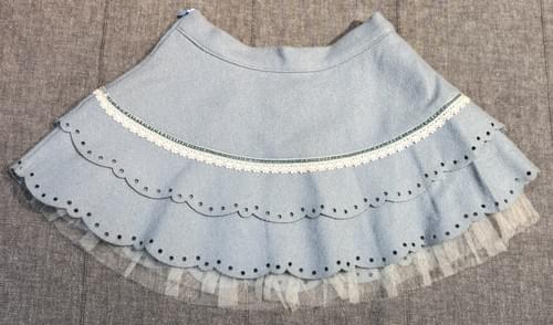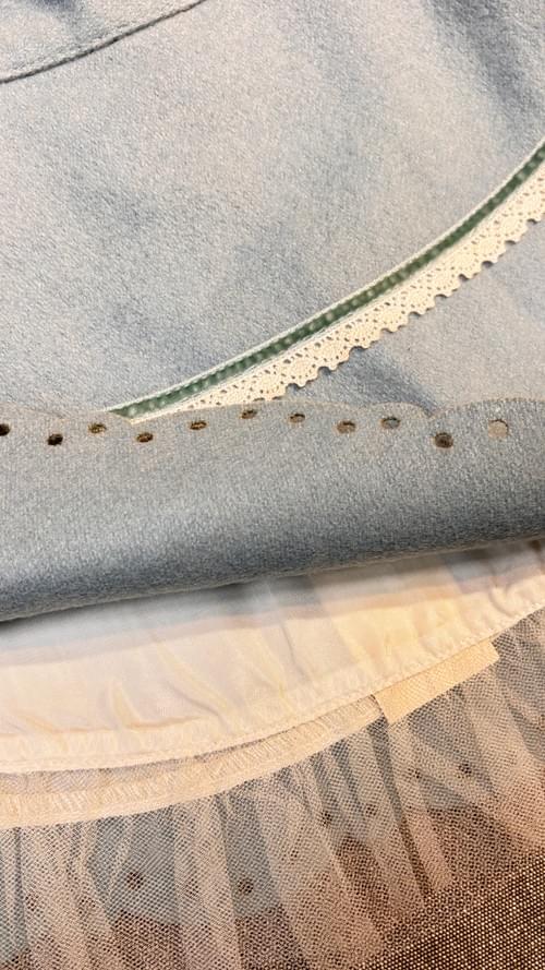 水藍色仿麂皮二段剪接短裙/VIP價590=點數70