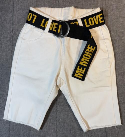 白色黑腰帶黃字五分褲/VIP價660=點數60