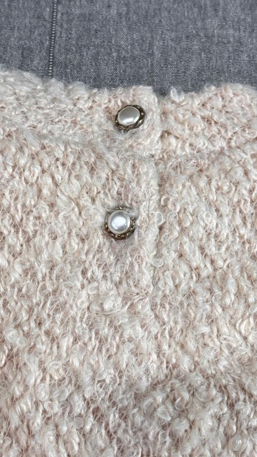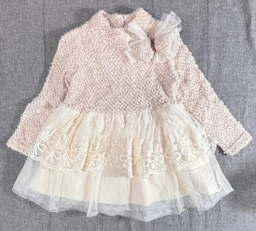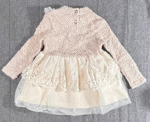 杏色毛毛衣飾結蕾絲網紗洋/VIP價790=點數70