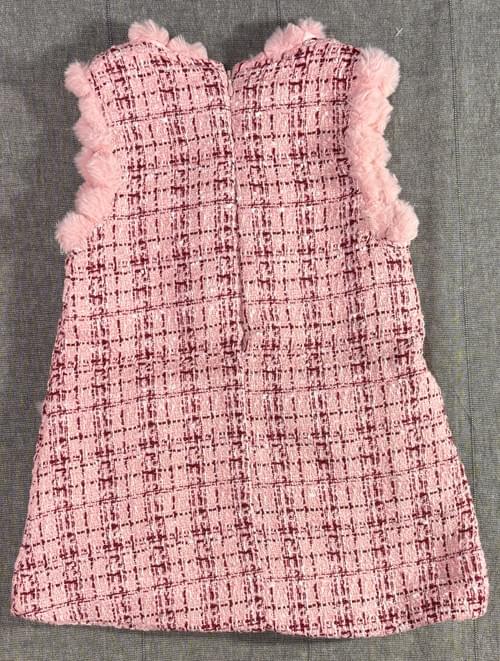 小香風粉絨蝴蝶結口袋連身裙+外套/VIP價820=點數30