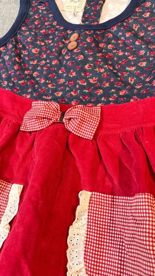藍碎花紅圍裙背心洋/VIP價890=點數100