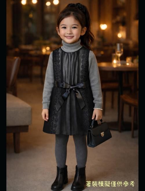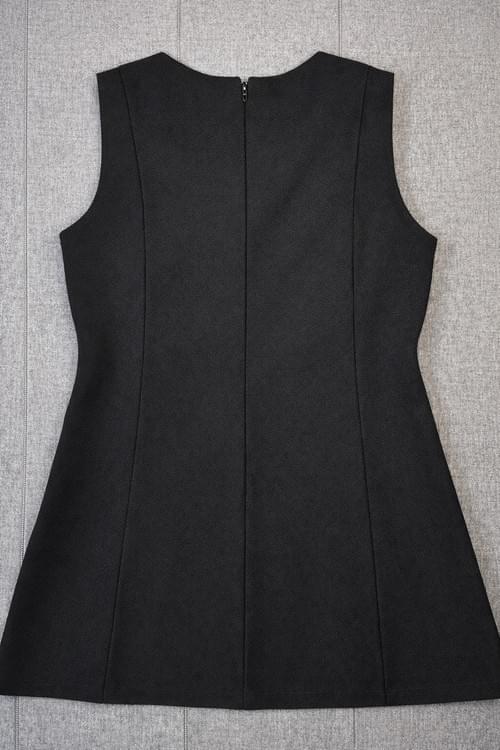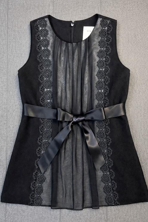 黑色毛料無袖前中紗飾二蕾絲洋裝 /VIP價890=點數90