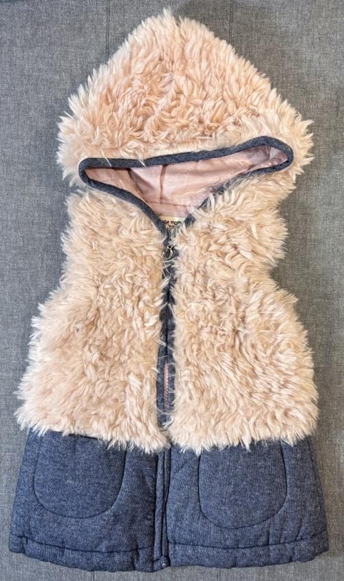 卡其毛毛藍色牛仔拉鍊背心/VIP價990=點數90